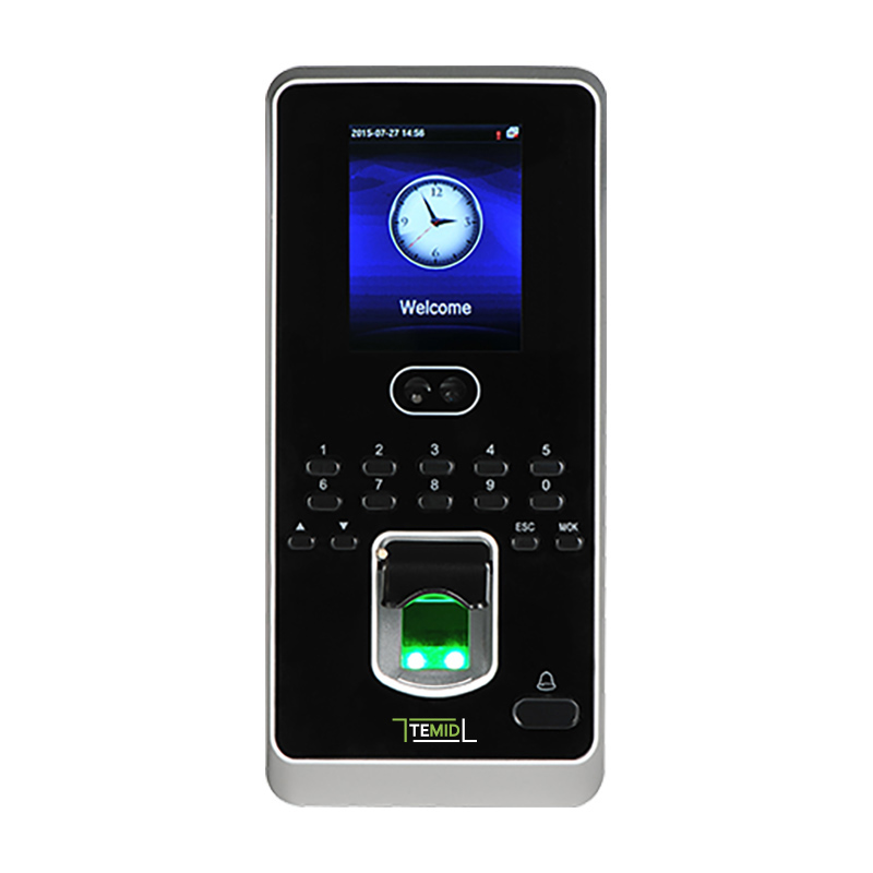 Мультибиометрический терминал учета рабочего времени и контроля доступа: распознавания лиц, отпечаток пальца, карты. Дисплей 2.8" TFT. Память: лиц 400, отпечатка пальца 1 000, карт 1000, событий 100 000.